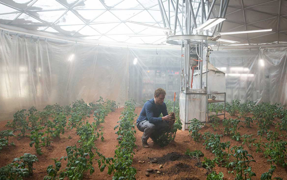 Научно-фантастический фильм Ридли Скотта «Марсианин», основанный на одноименном романе Энди Уира, показывает, как бы выживал Робинзон Крузо, попади он на Марс. Астронавт Марк Уотни (собственно говоря, наш Робинзон) в исполнении Мэтта Дэймона провел 461 сол (марсианские сутки, 1 сол = 24 часа 39 минут) на Красной планете, выращивая картофель из органических удобрений в специально оборудованной им теплице с марсианским грунтом, чтобы не умереть от голода. Дачникам на заметку!