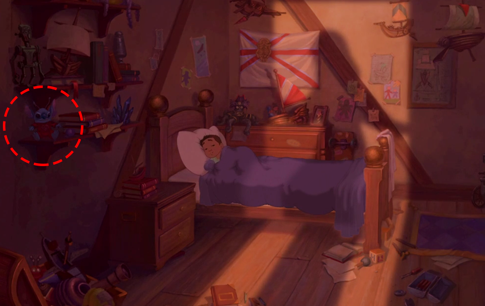 В комнате Джима из «Планеты сокровищ» можно найти игрушку в виде Стича в костюме астронавта.