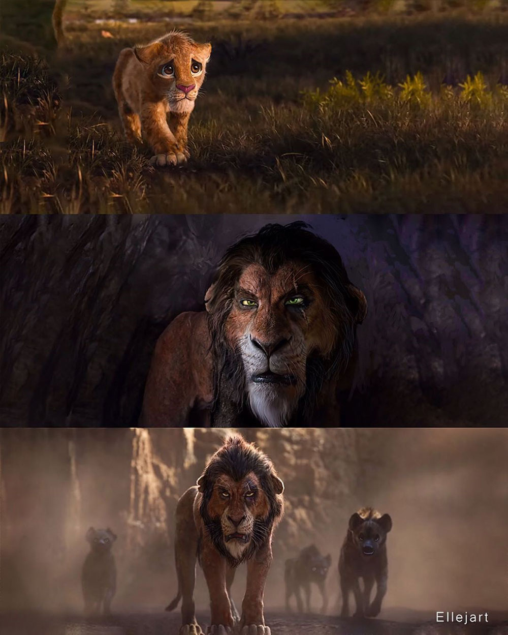 Игровой ремейк «Короля Льва» стал хитом и принес Disney приличные сборы. Однако далеко не всем пришлась по душе слишком реалистичная графика, которая лишила историю Симбы прежнего очарования (тут должна быть шутка о документалке National Geographic). Художник Nikolay Mochkin с этим согласен. Он показал, как бы выглядел фильм с более мультяшно-эмоциональными героями. Нам нравится!