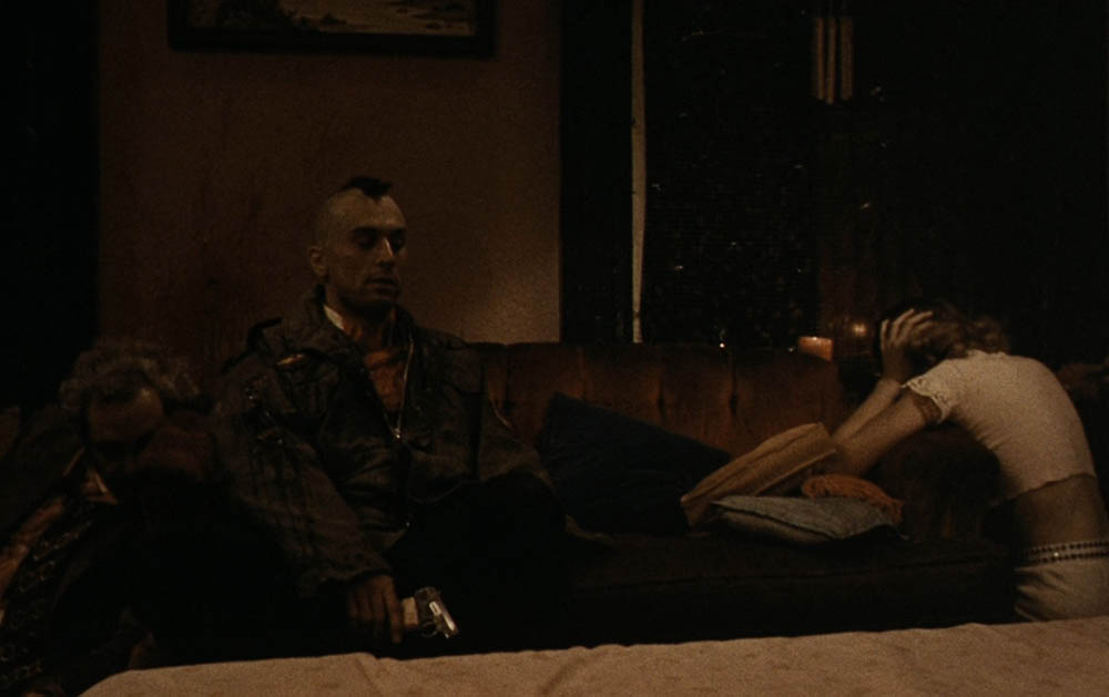 Герой служил в армии, учился всему понемногу, живет в лачуге, заваленной всяким хламом – зато совесть его чиста, поэтому он способен разглядеть порок в повседневности. Тихо проезжая по улицам, Трэвис видит, как прохожие и свет светофоров и рекламных вывесок смазываются и сливаются, особенно под покровом ночи и каплями дождя. Люди в мрачном городе огней неразличимы для Трэвиса, страдающего бессонницей. Значение фразы «Ты говоришь со мной?» становится самым весомым в культовой классике о ницшеанце, чья философия основана на отрицании и уничтожении.