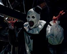 10 октября в российский прокат ворвался трэш-хоррор «Ужасающий 3» (18+) с фирменным для трилогии Дэмиена Леоне ультранасилием. Арт в харизматичном исполнении Дэвида Ховарда Торнтона стал еще злее и опаснее – он укрепил статус новой иконы ужасов, наравне с Джейсоном Вурхизом и Фредди Крюгером. Мы думали, что в первых двух частях (2016, 2022) клоун-маньяк уже выдал весь свой арсенал шокирующего, лютого, неприличного хаоса – но, как показывает третий фильм, тогда Арт лишь разогревался…
