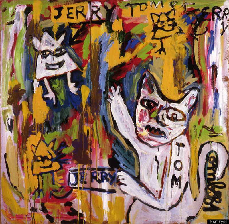 Французский художник и скульптор Робер Комба (Robert Combas) нарисовал картину, героями которой стали Том и Джерри. Непривычно видеть этих героев, нарисованных в стиле неоэкспрессионизма, согласитесь.