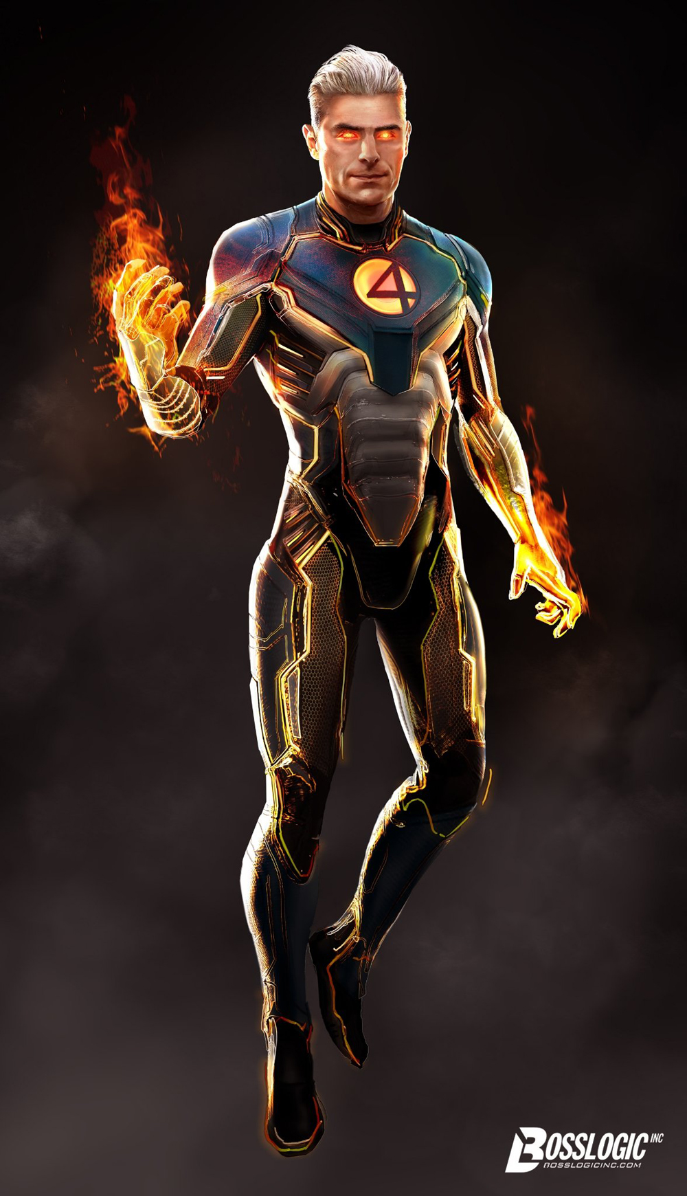BossLogic неожиданно выложил арты с Заком Эфроном в образе Человека-факела из Фантастической четверки.