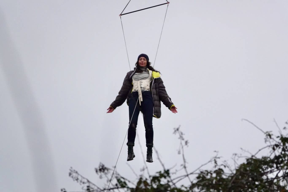 Герои спокойно прогуливаются по парку в Лондоне, но в один момент Серси по каким-то причинам взлетает. Как отмечает издание, это может быть конец фильма, когда супергероиня «вознесется до небес».