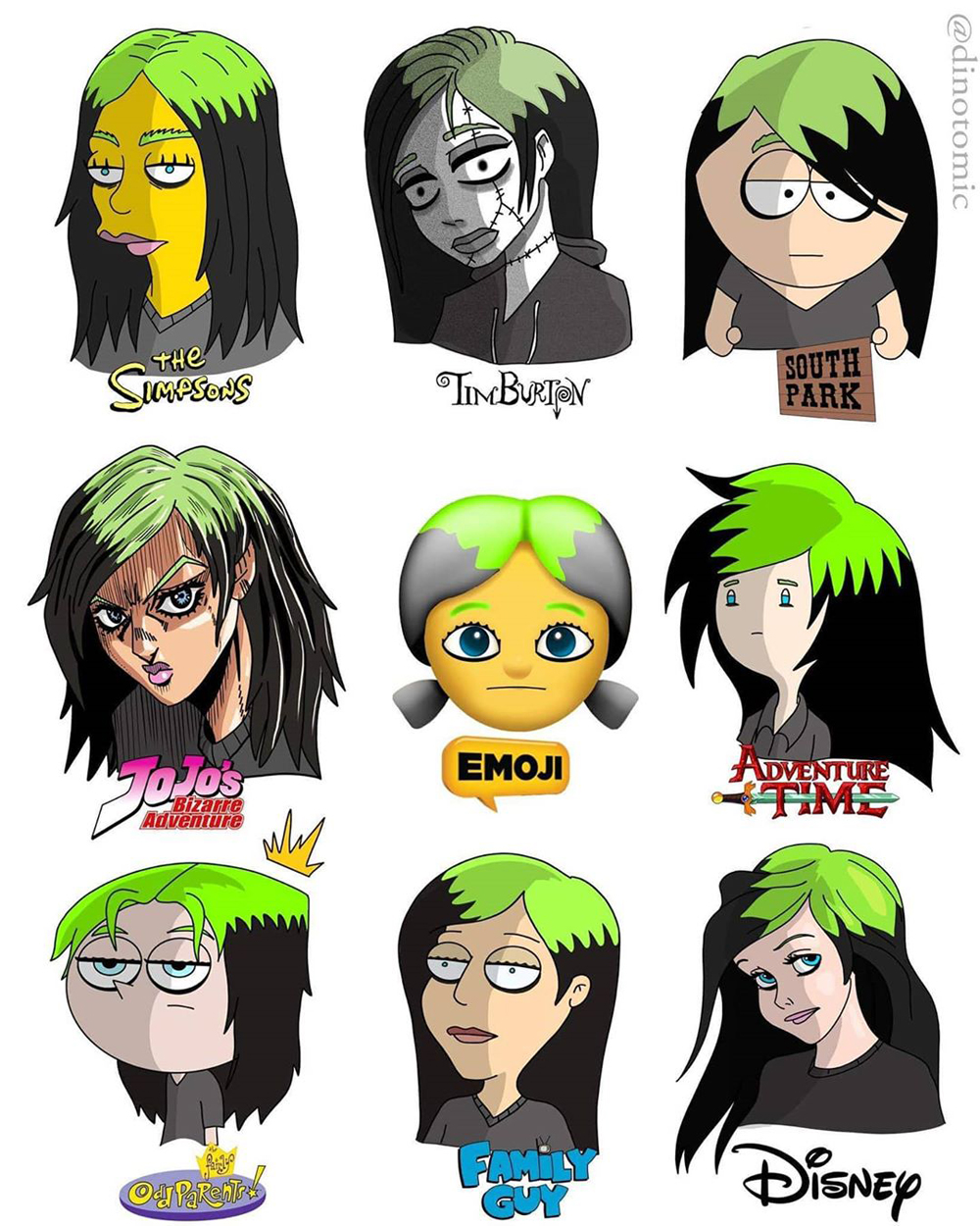 У художника есть еще несколько работ в похожем стиле. Вот, например, арты с Джонни Деппом, Билли Айлиш и Post Malone:
