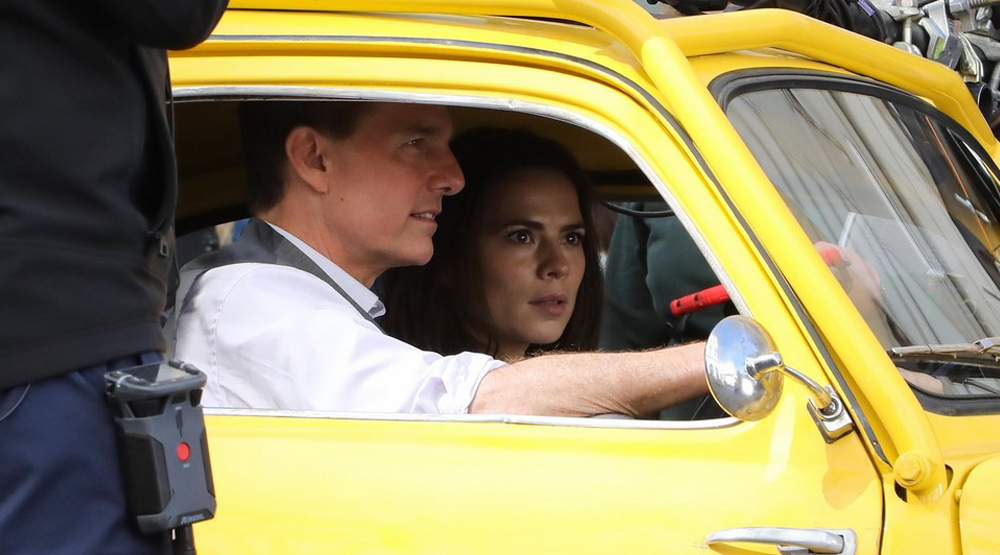 На снимках можно увидеть, как герои Тома Круза и Хейли Этвелл участвуют в автомобильной погоне. Актеры устроились в крутой, но уже довольно помятой машине. Судя по всему, гонка выдалась напряженной. А все это действие разворачивалось 9 октября в Риме, столице Италии:
