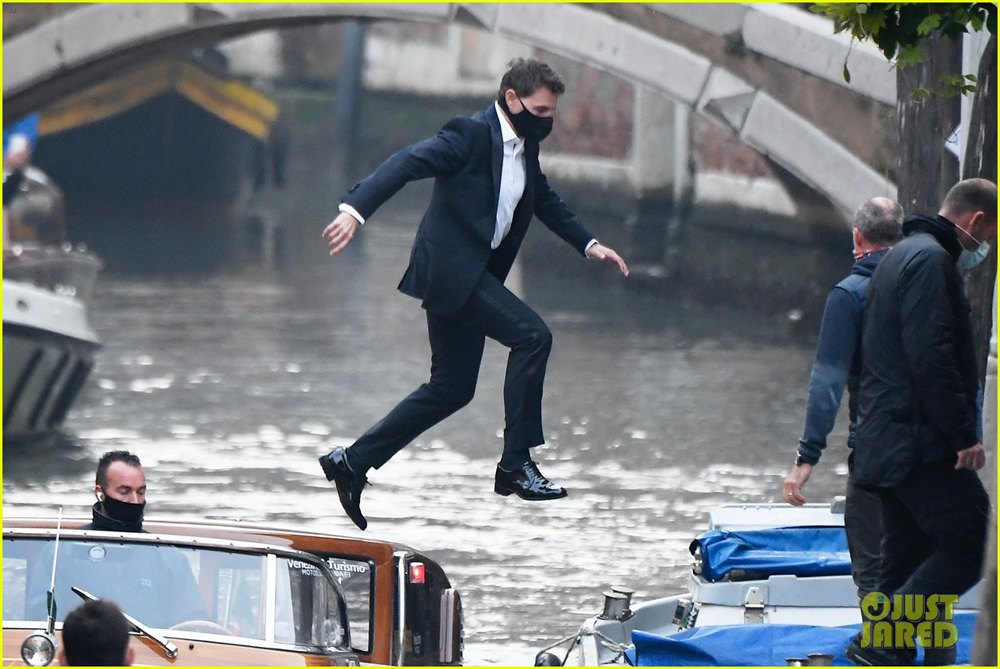 На этот раз команда проекта расположилась у канала в Венеции, Италия. На снимках исполнитель роли Итана Ханта прыгает с одного водного такси на другое, и делает это все 58-летний актер легко и непринужденно. На некоторых фото он даже позирует на катере, сидя в стиле Тони Старка: