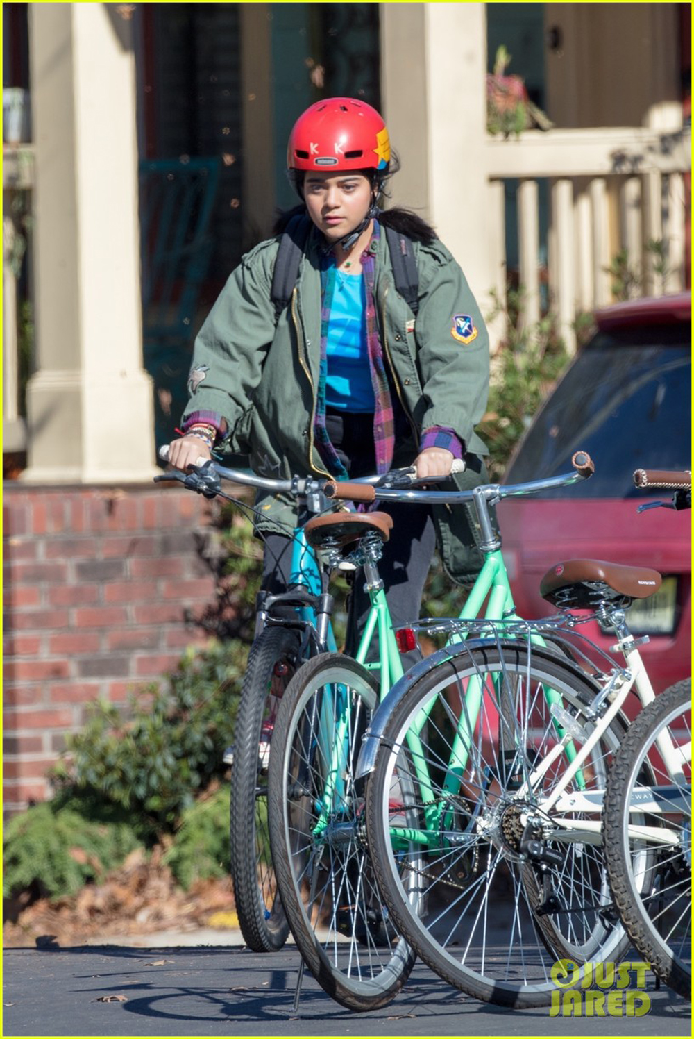 Мы можем рассмотреть будущую супергероиню Камалу Хан в исполнении дебютантки Иман Веллани сразу в двух образах! На одной порции снимков нам показали героиню в обычной одежде и на велосипеде. Однако кое-что интригующее есть в ее внешнем виде. На рукаве девушки можно заметить символ ВВС, который есть на куртке Капитана Марвел/ Кэрол Дэнверс (Бри Ларсон). Также на ее футболке можно разглядеть логотип Мстителей.