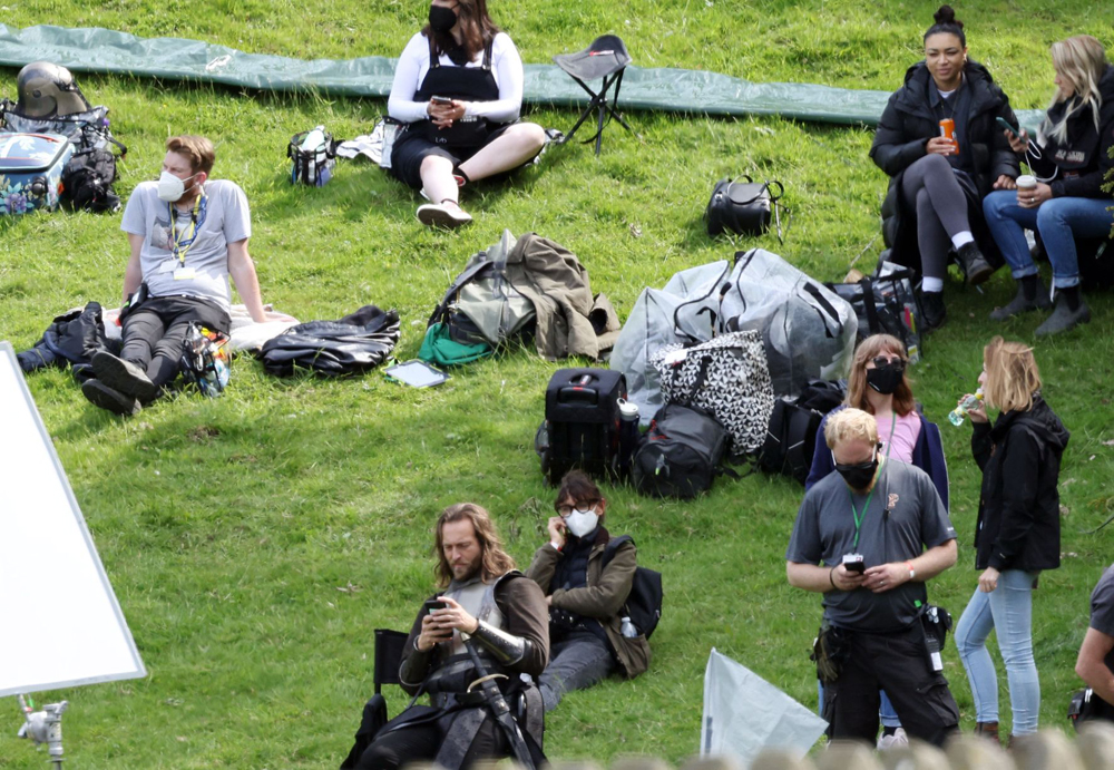 На фотографиях запечатлены статисты в рыцарских доспехах и с оружием. Здесь наверняка снимают какую-то масштабную боевую сцену. Кроме того, на площадке засветились актеры с жутким гримом и в черных плащах. Может быть, это темные маги.