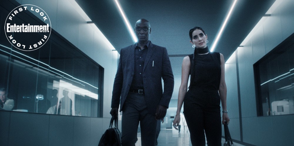 Вескер (Лэнс Реддик) на фото идет по коридору лаборатории фармацевтической компании Umbrella Corporation, из-за сотрудников которой на свободу вырвется опасный вирус. Ему компанию на снимке составляет генеральный директор организации Эвелин Маркус (Паола Нуньес) – дочь основателя Umbrella и вирусолога Джеймса Маркуса.