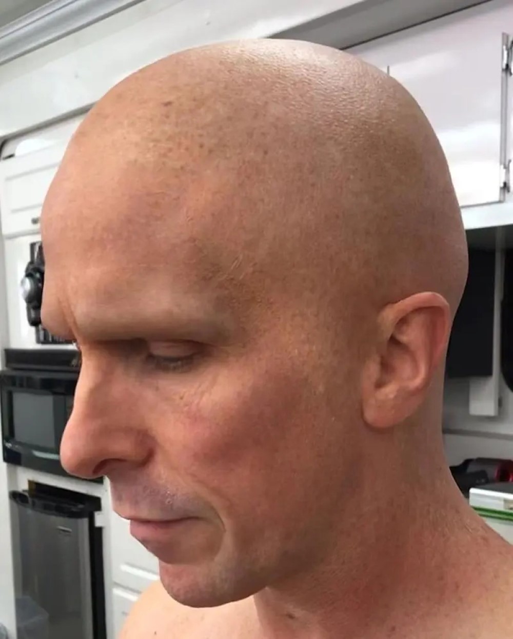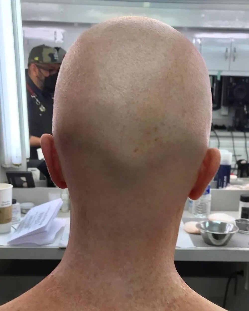 Фотографиями поделился у себя в Instagram художник по пластическому гриму Барт Миксон. Правда, он удалил пост, но снимки остались в Интернете. На фото можно увидеть лысого Бейла.