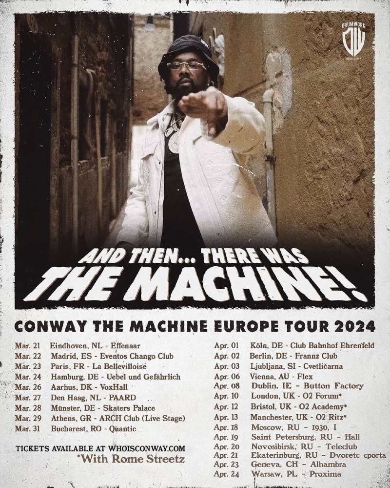 Столичное шоу Conway the Machine должно состояться 18 апреля в клубе 1930 Moscow. На сайте площадки пока ничего не указано, как и на официальном сайте самого артиста, список будущих концертов он опубликовал в соцсетях. Неясно также, где именно Conway the Machine собирается выступать в Санкт-Петербурге 19 апреля: клуб обозначен как просто Hall. Питерские меломаны предполагают, что рэпер имел в виду Aurora Concert Hall, но на сайте этого клуба тоже пока нет никакой информации. Однако обе названные даты на обеих площадках – 1930 Moscow и Aurora Concert Hall – свободны. Может быть, клубы поделятся информацией чуть позже.