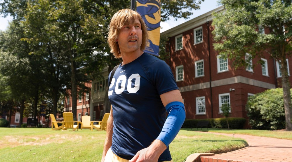 Рассу приходится играть в футбол в сложном гриме. 36-летний Глен Пауэлл предстанет в сериале в своем обычном виде, а также с лицевыми протезами.