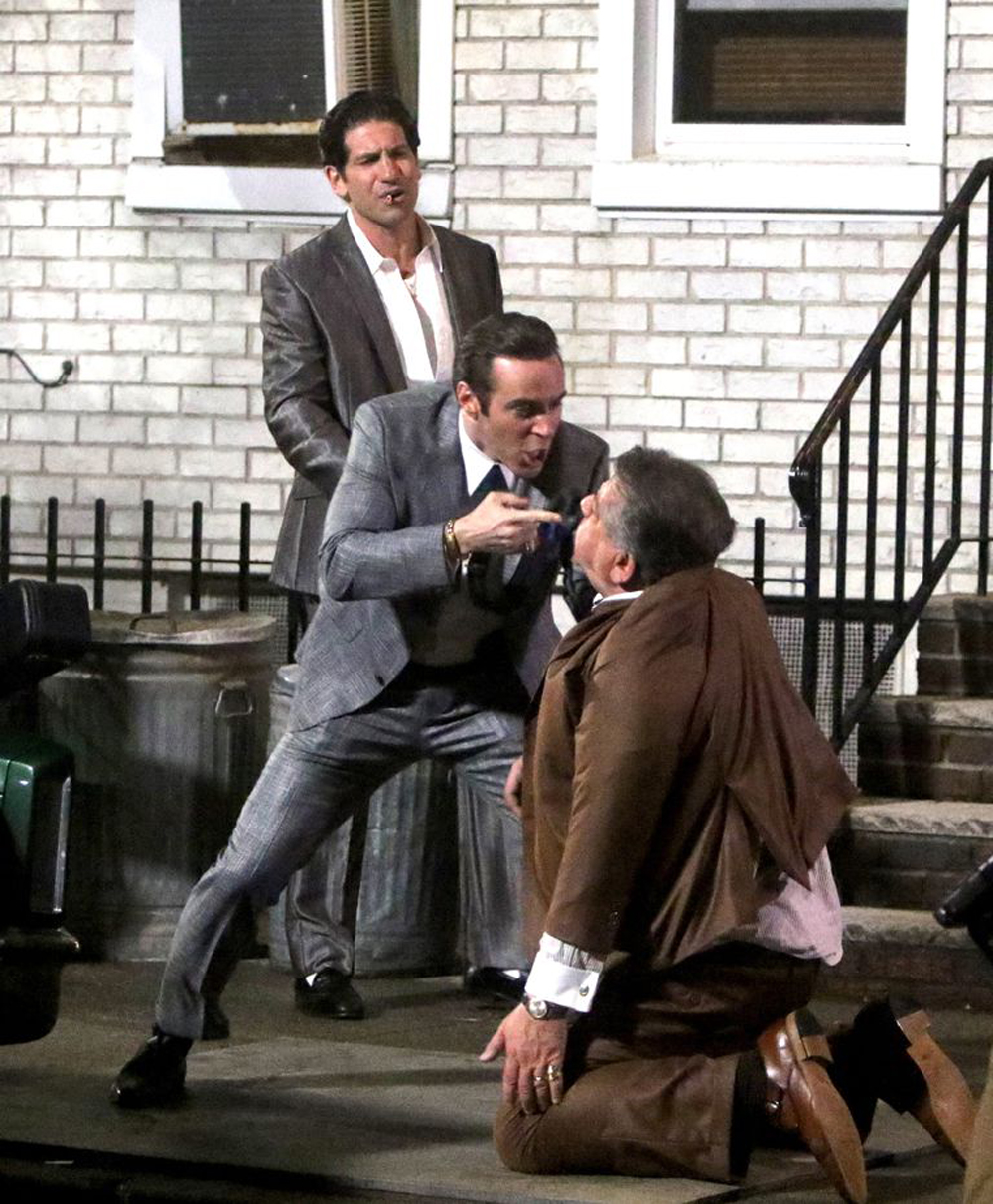 На снимках можно заметить звезду сериалов «Каратель» и «Ходячие мертвецы» Джона Бернтала. Он и другие актеры на площадке одеты в духе 1960-х. Как видим, их герои выясняют отношения с мужчиной: